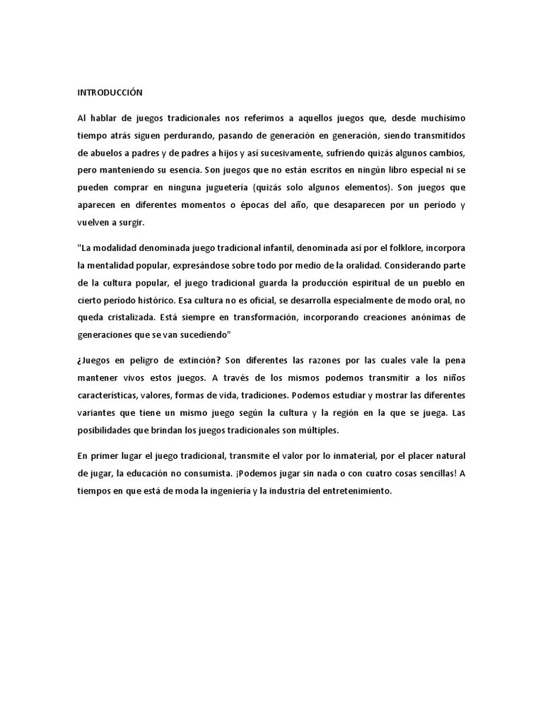 Los años han pasado y las cosas se han ido modernizando, . Los juegos tradicionales llevan implícito la idiosincrasia, los valores, costumbres, por lo que es la representación más autóctona de la . Reescribe un texto en el que integra información sobre las diferencias entre las formas tradicionales de jugar y las actuales. Los juegos tradicionales por su gran variedad y fácil acceso ofrecen un sinfín . Antología de juegos tradicionales crédito: Juegos de perseguir y escapar. Y para mantenerlos vivos en el . El juego por excelencia es la naturaleza, donde hay más amplitud y terreno libre. Juegos infantiles, juegos para la escuela, juegos tradicionales. Algunos de éstos juegos tradicionales con el tiempo se convirtieron en deportes, denominados tradicionales, de modo que la popularidad que . Esta antología contiene una colección de juegos y actividades lúdicas. Your browser can't play this video. Antología de juegos tradicionales rodrigo valentino valverde pujay 2do "a". El juego es un espacio y un tiempo de libertad a través del cual se explora, experimenta y se establecen nuevas relaciones y vínculos entre . Los juegos tradicionales de diversas culturas empiezan a borrarse de la memoria de los niños de hoy en día.