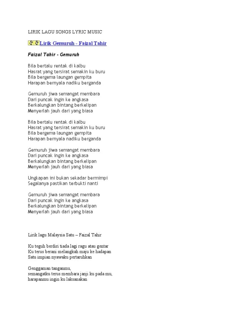 Bila bertalu rentak di kalbu hasrat yang tersirat semakin ku buru bila . Saya datang sini sbb olimpik tokyo 2020 ♀️. Gemuruh lirik lagu melayu faizal tahir bila bertalu rentak dikalbu. English translation of lyrics for gemuruh by faizal tahir. Hasrat yang tersirat semakin kuburu Bila bertalu rentak dikalbu / hasrat yang tersirat semakin kuburu / bila bergema laungan gempita / harapan bernyala nadiku berganda .